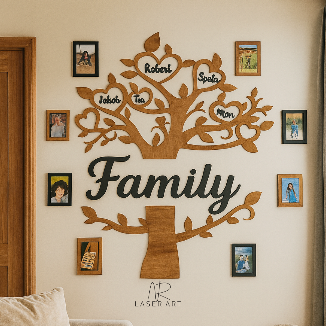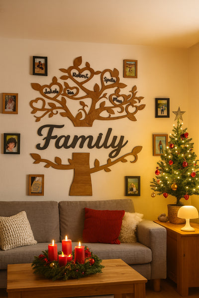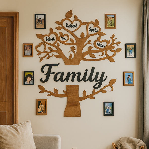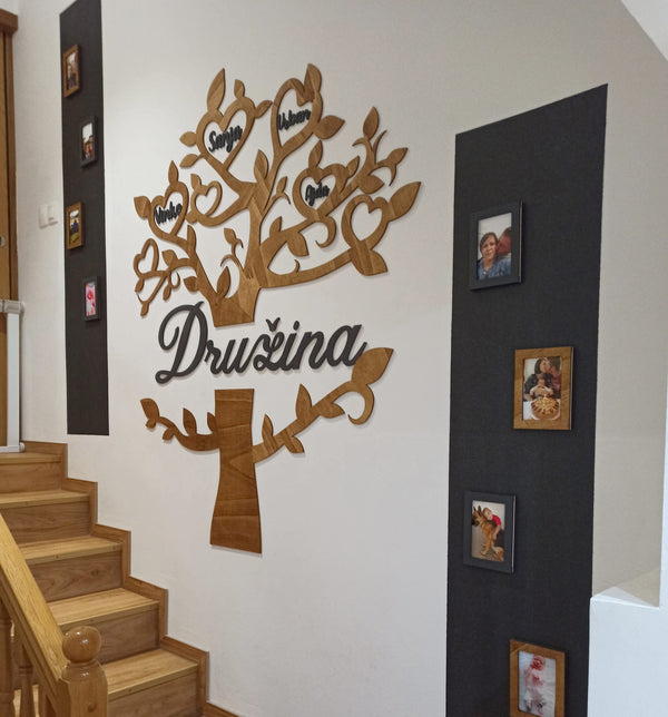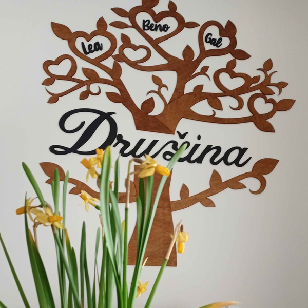 Naše leseno drevo združuje imena vaših najdražjih v umetnino, ki ogreje dom in srce.